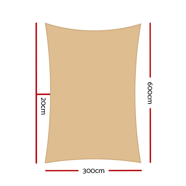 Shade Sail 3X6M Rectangle 185Gsm 95% Sand Shade Cloth