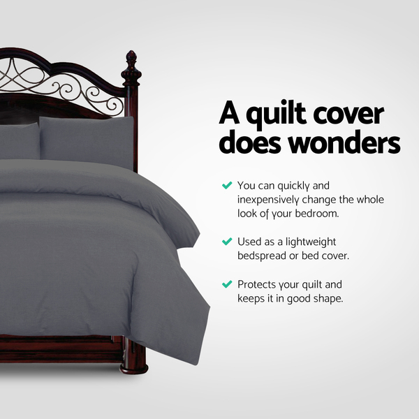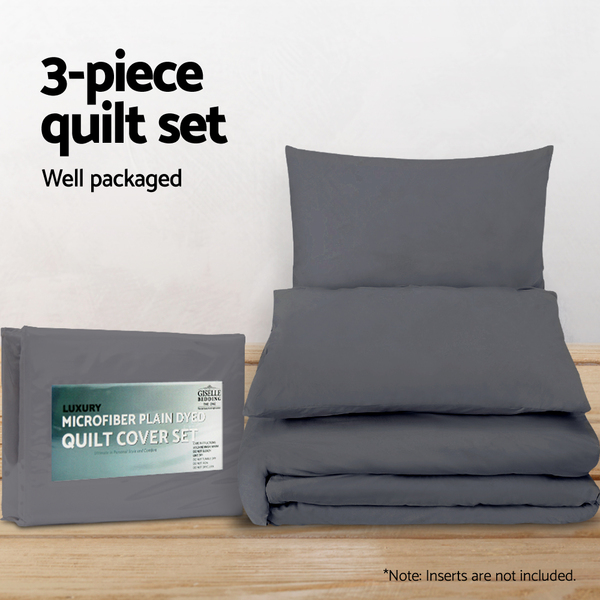 Giselle Bedding Super King Size Classic Quilt Cover Set - Charcoal
