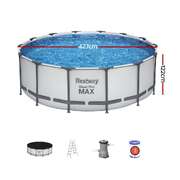 Swimming Pool 427x427x122cm Steel Frame Above Ground Pools Round Filter Pump Ladder