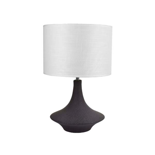 The sleek and curvy Symfonisk Desk Lamp oozes class and style, featuring a conical matte black ceramic base with a fine gloss fleck, supporting a white cylindrical white fabric lampshade that creates a modern noir aesthetic.
