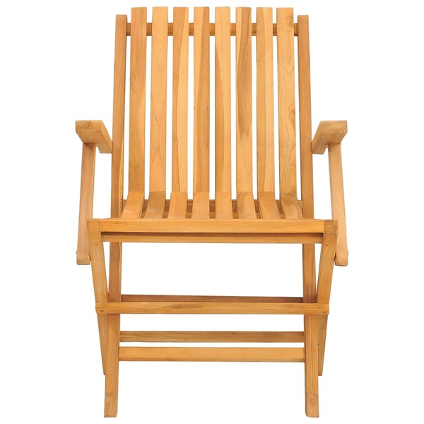 Enjoy a cosy leisure time with your family and friends in your outdoor space on these wooden folding garden chairs! Solid teak wood: Solid teak wood is a beautiful natural material. It has been seasoned, kiln dried and then fine sanded to give a very smooth appearance. Teak wood is known for its exceptional strength and weather resistance.Foldable function: The garden chair can be folded away to save space when not in use.Comfortable experience: The backrest and armrests of the garden seating give you excellent support, providing an optimal comfortable experience.Slatted design: The outdoor chair with a slatted design looks simple and timeless. Note:To make sure your outdoor furniture stays beautiful, we recommend protecting it with a waterproof cover.