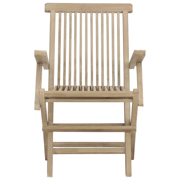 Enjoy a cosy leisure time with your family and friends in your outdoor space on these wooden folding garden chairs! Solid teak wood: Solid teak wood is a beautiful natural material. It has been seasoned, kiln dried and then fine sanded to give a very smooth appearance. Teak wood is known for its exceptional strength and weather resistance.Foldable function: The garden chair can be folded away to save space when not in use.Comfortable experience: The backrest and armrests of the garden seating give you excellent support, providing an optimal comfortable experience.Slatted design: The outdoor chair with a slatted design looks simple and timeless. Note:To make sure your outdoor furniture stays beautiful, we recommend protecting it with a waterproof cover.