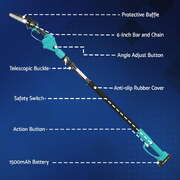 Maintain your garden with ease using the 6-inch cordless electric chainsaw. This lightweight pruner features a telescopic pole that extends from 130cm to 250cm, allowing you to trim high branches and hedges safely from the ground.