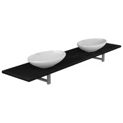Our practical and timeless bathroom furniture set consists of a wall shelf and two oval-shaped basins. It will make a stylish addition to any bathroom, washroom or powder room. Made of the strong material, the bathroom wall shelf is exceedingly stable and durable, making it the perfect place to place the included ceramic basins. This ceramic basins have a high gloss finish and are easy to clean with a damp cloth. In addition, the bathroom furniture can be easily installed on the wall with our included brackets and mounting materials. The perfect combination of the wall shelf and wash basin will be the focal point in your bathroom! Please note that no drain is included in delivery.