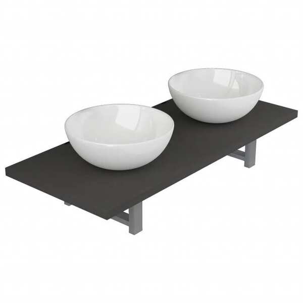 Our practical and timeless bathroom furniture set consists of a wall shelf and two round-shaped basins. It will make a stylish addition to any bathroom, washroom or powder room. Made of the strong material, the bathroom wall shelf is exceedingly stable and durable, making it the perfect place to place the included ceramic basins. The ceramic basins have a high gloss finish and are easy to clean with a damp cloth. In addition, the bathroom furniture can be easily installed on the wall with our included brackets and mounting materials. The perfect combination of the wall shelf and wash basins will be the focal point in your bathroom! Please note that no drain is included in delivery.