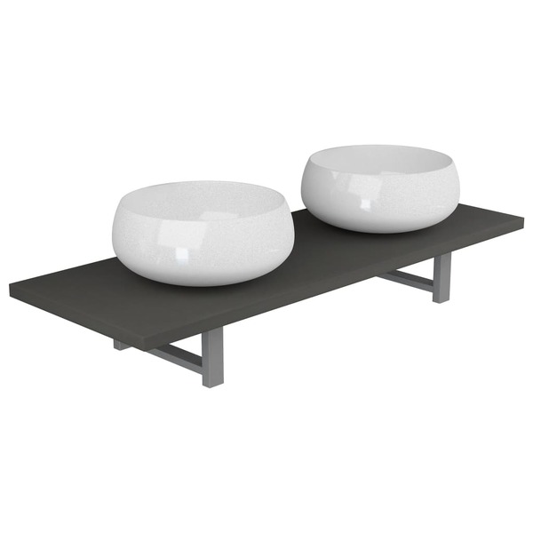 Our practical and timeless bathroom furniture set consists of a wall shelf and two round-shaped basins. It will make a stylish addition to any bathroom, washroom or powder room. Made of the strong material, the bathroom wall shelf is exceedingly stable and durable, making it the perfect place to place the included ceramic basins. This ceramic basins have a high gloss finish and are easy to clean with a damp cloth. In addition, the bathroom furniture can be easily installed on the wall with our included brackets and mounting materials. The perfect combination of the wall shelf and wash basin will be the focal point in your bathroom! Please note that no drain is included in delivery.