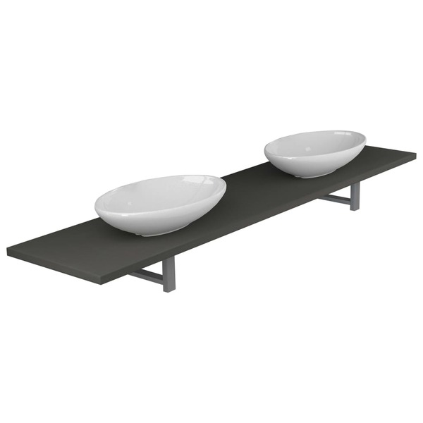 Our practical and timeless bathroom furniture set consists of a wall shelf and two oval-shaped basins. It will make a stylish addition to any bathroom, washroom or powder room. Made of the strong material, the bathroom wall shelf is exceedingly stable and durable, making it the perfect place to place the included ceramic basins. This ceramic basins have a high gloss finish and are easy to clean with a damp cloth. In addition, the bathroom furniture can be easily installed on the wall with our included brackets and mounting materials. The perfect combination of the wall shelf and wash basin will be the focal point in your bathroom! Please note that no drain is included in delivery.