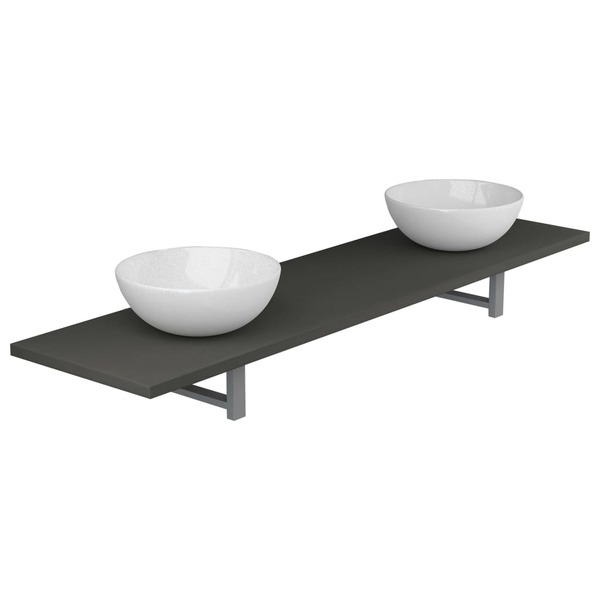 Our practical and timeless bathroom furniture set consists of a wall shelf and two round-shaped basins. It will make a stylish addition to any bathroom, washroom or powder room. Made of the strong material, the bathroom wall shelf is exceedingly stable and durable, making it the perfect place to place the included ceramic basins. This ceramic basins have a high gloss finish and are easy to clean with a damp cloth. In addition, the bathroom furniture can be easily installed on the wall with our included brackets and mounting materials. The perfect combination of the wall shelf and wash basin will be the focal point in your bathroom! Please note that no drain is included in delivery.