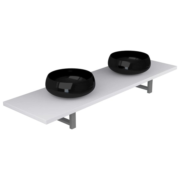 Our practical and timeless bathroom furniture set consists of a wall shelf and two round-shaped basins. It will make a stylish addition to any bathroom, washroom or powder room. Made of the strong material, the bathroom wall shelf is exceedingly stable and durable, making it the perfect place to place the included ceramic basins. This ceramic basins have a high gloss finish and are easy to clean with a damp cloth. In addition, the bathroom furniture can be easily installed on the wall with our included brackets and mounting materials. The perfect combination of the wall shelf and wash basin will be the focal point in your bathroom! Please note that no drain is included in delivery.
