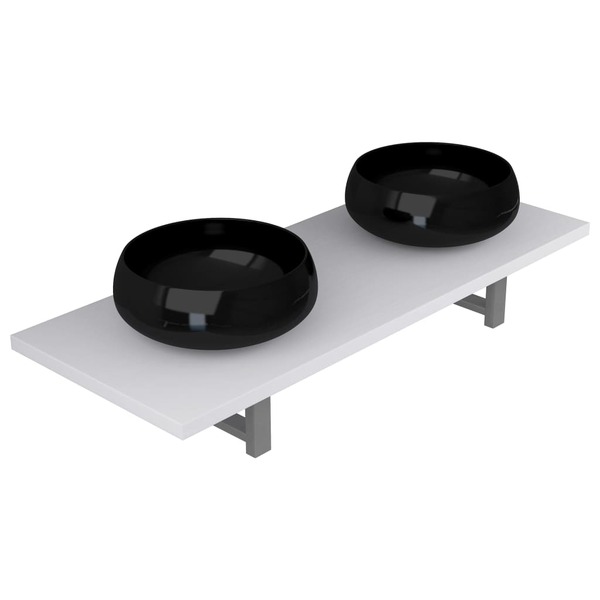 Our practical and timeless bathroom furniture set consists of a wall shelf and two round-shaped basins. It will make a stylish addition to any bathroom, washroom or powder room. Made of the strong material, the bathroom wall shelf is exceedingly stable and durable, making it the perfect place to place the included ceramic basins. This ceramic basins have a high gloss finish and are easy to clean with a damp cloth. In addition, the bathroom furniture can be easily installed on the wall with our included brackets and mounting materials. The perfect combination of the wall shelf and wash basin will be the focal point in your bathroom! Please note that no drain is included in delivery.