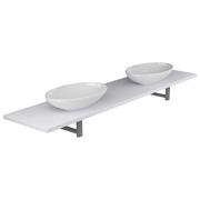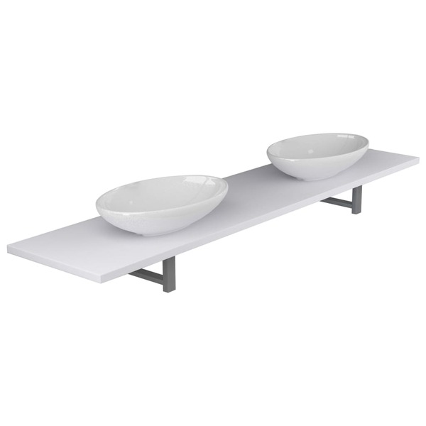 Our practical and timeless bathroom furniture set consists of a wall shelf and two oval-shaped basins. It will make a stylish addition to any bathroom, washroom or powder room. Made of the strong material, the bathroom wall shelf is exceedingly stable and durable, making it the perfect place to place the included ceramic basins. This ceramic basins have a high gloss finish and are easy to clean with a damp cloth. In addition, the bathroom furniture can be easily installed on the wall with our included brackets and mounting materials. The perfect combination of the wall shelf and wash basin will be the focal point in your bathroom! Please note that no drain is included in delivery.