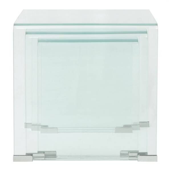 Three Piece Nesting Table Set Tempered Glass Clear