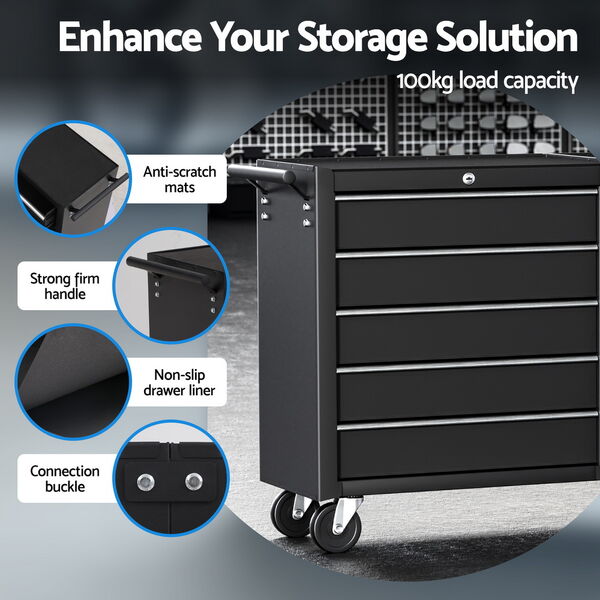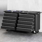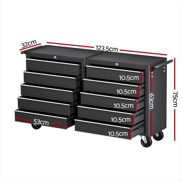 Tool Chest Trolley 10 Drawers Toolbox Storage Black