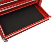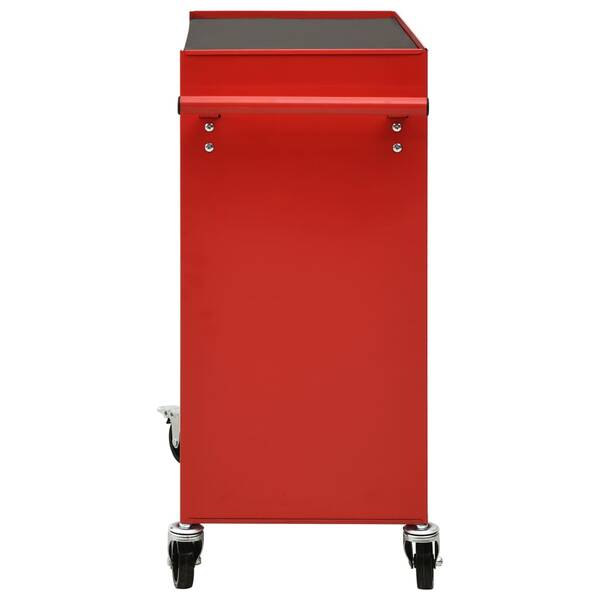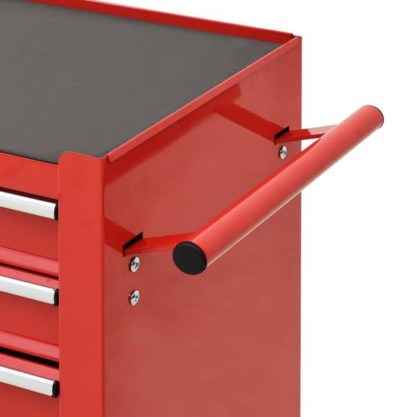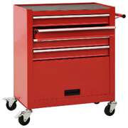 Get this handy tool trolley with 4 sliding drawers to store and organise your tools. Each drawer has an anti-slip bottom lining to keep your tools in place. Made of steel, this trolley is sturdy and stable. The drawer has an interlocked function, which prevents more than one drawer being opened at once. Hence, you can only open one drawer at a time. Two of the swivel castors have brakes. The robust countertop on the tool cabinet is a great spot to keep frequently-used tools within reach. There is also a convenient side handle for pushing the trolley.