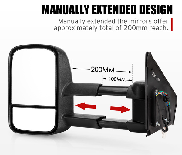 Extendable Construction: Extendable construction guarantees this mirror a total of 200mm of wider extension compared with factory ones.