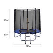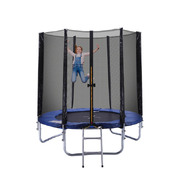 To withstand all the unlimited fun our product is made of a high tensile galvanized steel frame. The entire structure is stabilized to stay firm and steady once installed. Its steel construction offers exceptional resistance towards rust and corrosion. It comprises of a well-stitched mat to effectively absorb all those unpredictable movements for a smoother experience. The surface is provided with a UV stabilized base with 12cm thick padding. With our product you get safety first, featuring a unique double locking system to secure the trampoline. It is equipped with foam-wrapped steel poles all around to form a safe space. A 3mm weave net encloses the trampoline to prevent accidental falloffs. For greater convenience, we also provide a step ladder for easy access to the trampoline.