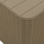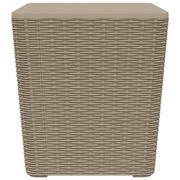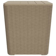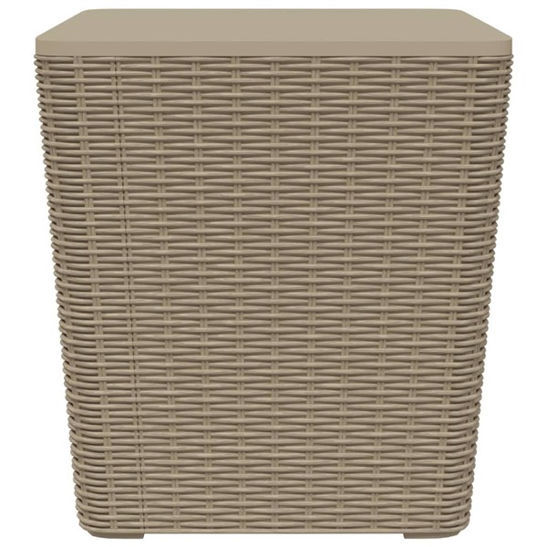 This stylish garden table with a convenient storage compartment and a removable lid is an ideal addition to your outdoor space. Durable material: Polypropylene (PP) is a popular plastic that is also one of the most used materials in outdoor furniture. It's lightweight, tough, and resistant to impact. Also, its resistance to UV rays and weathering makes it easy to clean and maintain.Imitation rattan look design: The outdoor table features an imitation rattan design that adds a touch of natural charm to your outdoor living space.Extra storage area: The garden side table has a storage area under the removable lid, which is perfect for keeping your essentials within reach and well organised.Practical lid: With the lid closed as a tabletop, the sturdy balcony table is perfect for keeping your phone, book, snack, or drink within reach. Note:To make sure your outdoor furniture stays beautiful, we recommend protecting it with a waterproof cover.