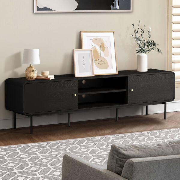 TV Cabinet Entertainment Unit Stand 180cm Wooden Black