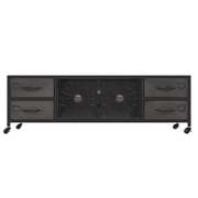 This TV cabinet is definitely meant to be a focal point of your living room or bedroom. Premium material: The TV unit is made of iron, which makes it highly stable and durable.Ample storage space: The TV stand features 4 drawers and 1 compartment with 2 doors for keeping DVD players, game consoles, streaming devices, and media carriers neatly organised.Sturdy top: The media cabinet has a sturdy top, making it ideal for displaying decorative objects, photo frames, potted plants, etc.Convenient design: The TV stand is equipped with 4 wheels and can be flexibly placed and easily moved around.