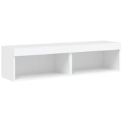 Featuring a trendy yet practical design, these TV cabinets with LED lights will become a focal point of your room. Durable material: The engineered wood is of exceptional quality with smooth surface and also features strength, stability and resistance to moisture. Made of engineered wood, these TV stands are sturdy and durable.Ample storage space: These TV units offer ample storage space for keeping your DVD players, receivers, disks, and other small items well organised and within reach.RGB LED lights: These entertainment centres feature RGB LED lights, which have different menus to change the colour of lights and let the colour adjust automatically.Wall-mounted design: These media cabinets can be wall-mounted to add extra storage space. That way, you can maximise your floor space and keep the area clean. Good to know:Screws and plugs for inside the wall are not included. We advise to find and use screws and plugs suitable specifically for your walls. If you're not sure, you can consult with a professional. Please read and follow each step of the instructions.The product has a USB connector that requires a certified 5V USB power source (not included).