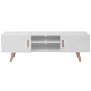 This high gloss TV stand will become the focal point of your living room or entertainment area. It has plenty of storage space and the roomy design works really well. Its sturdy construction makes the stand highly durable. The high gloss finish gives the piece an elegant look and feel that will suit any decor. The large cabinets and shelves with ample surface space allow you to keep your DVD player, game console, streaming device and media carriers neatly organised. What's more, you can keep the cables out of sight easily thanks to the 2 cable outlets. With our high gloss entertainment stand for large TVs you can create a sleek, modern entertainment centre for all of your media!