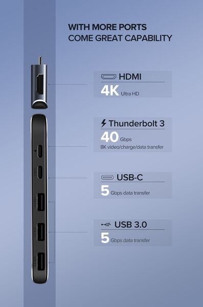 1 xUGREEN Dual Type-C 5 in 1 to 3*USB3.0+ USB-C Female+PD Converter (50775)