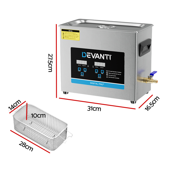 6.5L Ultrasonic Cleaner Heater Cleaning Machine Timer Industrial 180W