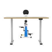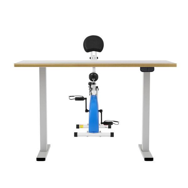 The electric standing desk with integrated under desk exercise bike offers a versatile workspace solution, allowing users to alternate between standing and sitting, promoting productivity and health, delivering efficient cardio workouts while you work or relax.