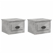 Urban Elegance: Set of 2 Wall-mounted Concrete Grey Bedside Cabinets