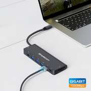 - USB Hub: 3x USB-A Female (SuperSpeed 5Gbps), 1x USB-C Female (SuperSpeed 5Gbps)