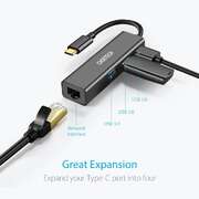 Specifically designed to complement the latest technology and smart devices with USB-C connectivity, Contain three USB3.0 ports and one RJ-45 port. like 2017/ 2016 MacBook Pro, 2016/2015 MacBook, Chromebook, and more other type-c devices. others USB-C laptops. Let you connect your laptop to other USB devices for data transfer, display expansion, and charging when you are in the office or traveling.