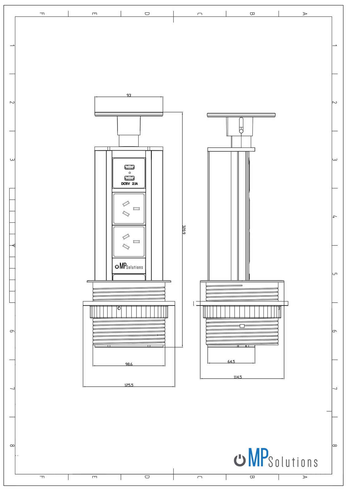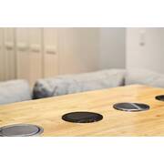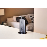 The MPS “V2” Pop Up Power Point is simple to install. A hole with a diameter of 102mm is required in the desired installation surface. The unit can then be fitted to the hole, and plugged into a standard power point underneath the bench top surface. The unit is then ready for immediate use – No professional help required!