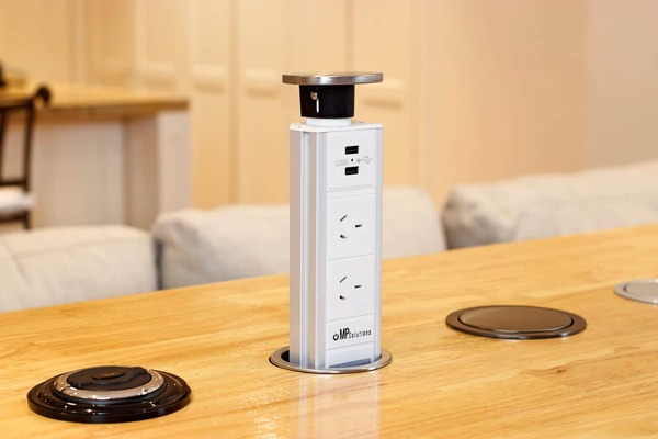 Our Pop Up Power Points feature two Australian Outlets, and two USB Charging outlets as standard to allow users to easily charge their portable devices with little hesitation. Small portable electronic devices that use USB to charge, such as iPhones, Android phones, iPods, MP3 Players, and digital camera... can charge directly from the unit without any external transformer - designed for added convenience. THE ADVANTAGE: The ability for Pop Up Power Points to easily hide away from a simple push down, or to be extracted from a simple pull up, means they can suit most environments without being in the way of other appliances. It also allows them to look stylish, and be hidden away when they don't need to be used. Installation on tabletop locations, allows power to be provided where it is needed most, from kitchen appliances to laptop computers, all commonly used on bench-top locations.