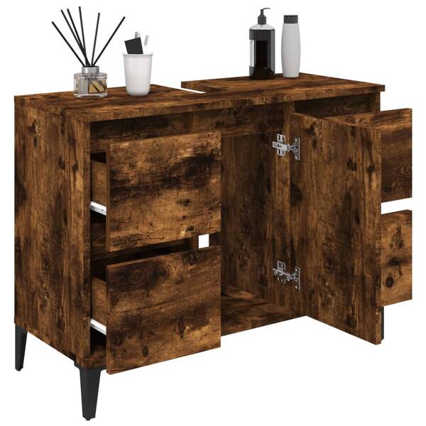 Crafted Vanity Storage Engineered Wood Cabinet Smoked Oak