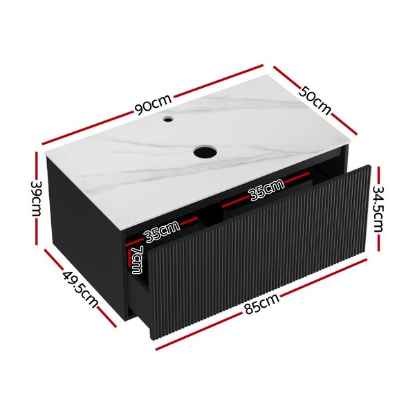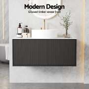 Vanity Unit 900Mm Bathroom Cabinet Storage Wall Hung Grooved Timber
