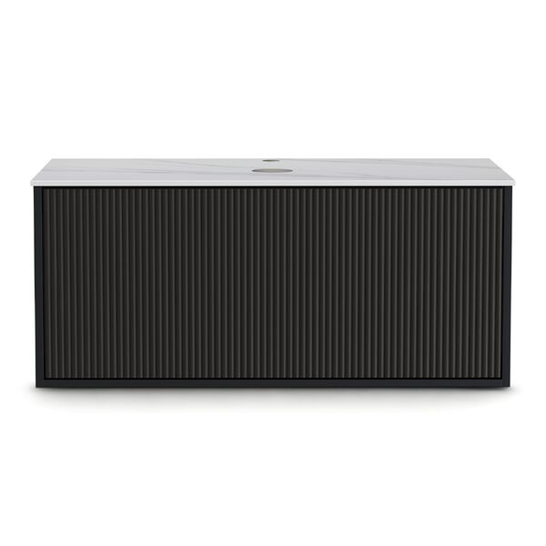 This cabinet combines modern aesthetics with maximum functionality. Featuring a durable sintered stone countertop that resists scratches and moisture, this cabinet is built to last. The handle-free soft-closing drawer adds a touch of elegance and ensures quiet operation. Constructed with quality 15mm MDF board, it offers strength and stability for daily use. Designed for easy installation, it includes a pre-drilled water outlet port and tap hole, making setup a breeze. The smooth surfaces are also easy to clean, keeping your bathroom looking pristine effortlessly. Please note, the basin is not included.
