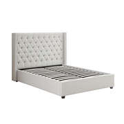 Veronica Bed Frame King Size Winged Grey Linen Fabric Seam Grid