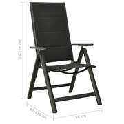 Enjoy a cosy leisure time with your friends or family in your outdoor space on this folding garden chair set! The powder-coated aluminium frame makes the outdoor chair sturdy and durable, providing a lifelong service. The armchair features an adjustable backrest which can be reclined in 7 settings, so you can always find the most comfortable position. The padded seat with breathable textilene provides comfortable seating experience. Note: In order to extend the life of your outdoor furniture, we recommend you to clean it regularly and do not leave it outdoors without protection unnecessarily.Clean: Use a mild soap solutionStoring: If possible, store in a cool, dry place indoors. If the product is stored outdoors, protect it with a waterproof cover. Wipe and dry the excess water or snow from flat surfaces after a rain or snowfall. Allow sufficient air circulation to avoid moisture-related damage.