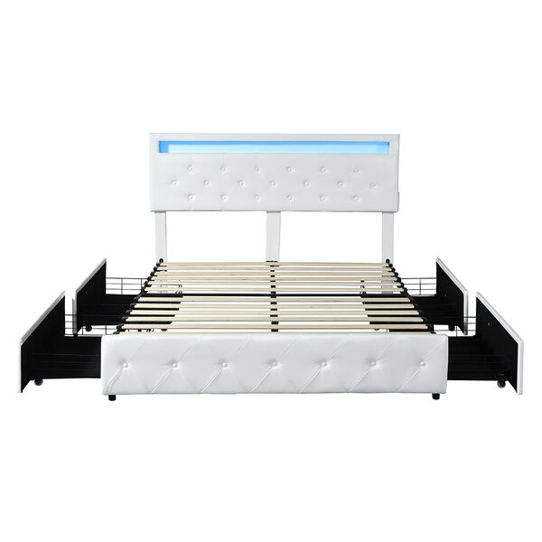 Versatile Queen Bed Frame RGB LED PU 4 Drawer USB - Scandi Inspired