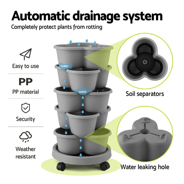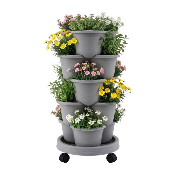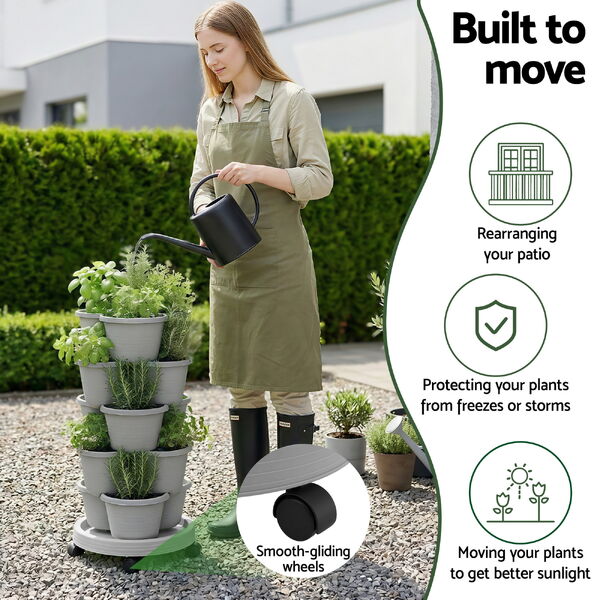 Vertical Garden Planter 5 Tier Stackable Garden Tower With Wheels Grey