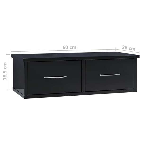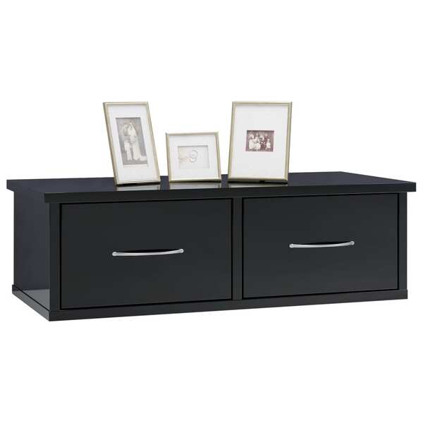 Wall-mounted Drawer Shelf High Gloss Black Chipboard
