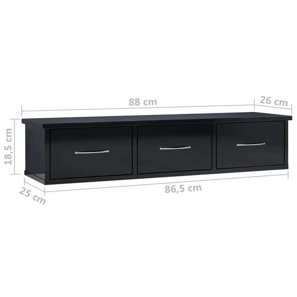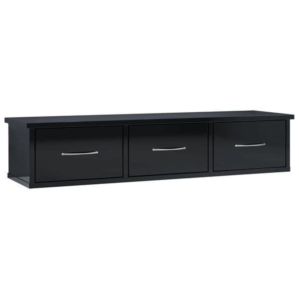 Wall-mounted Drawer Shelf High Gloss Black Chipboard