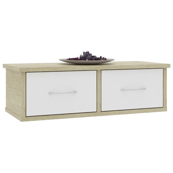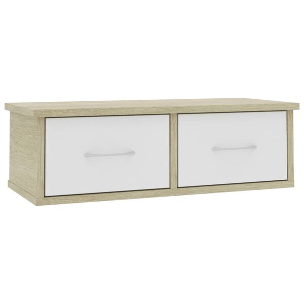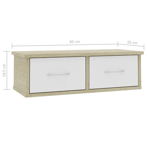Wall-mounted Drawer Shelf White and Sonoma Oak Chipboard