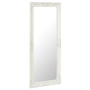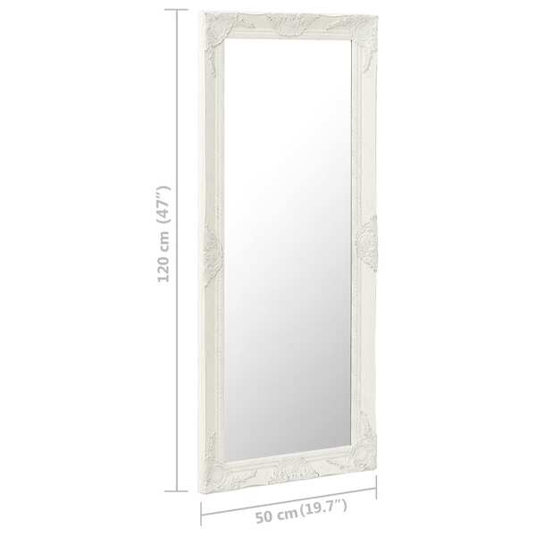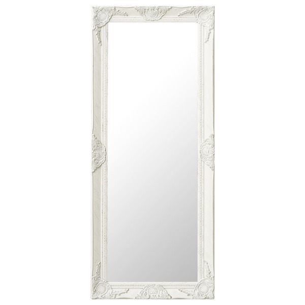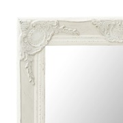 This beautifully designed wall mirror with an ornate frame creates a classic atmosphere in your bathroom, dressing room or bathroom. The antique-look mirror features a sturdy wooden frame that is meticulously crafted in a decorative Baroque pattern. Additionally, the bevelled edge gives this mirror a unique look. The mirror is ready to be wall-mounted thanks to the already installed hooks on the backboard.