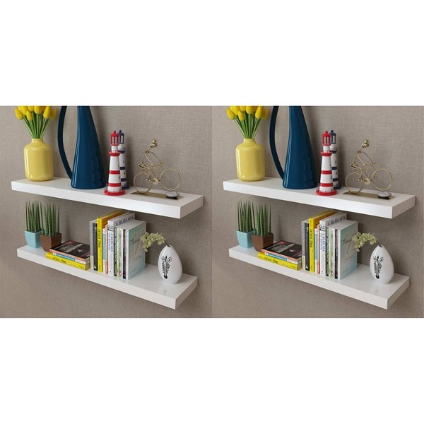 This set consists of 4 wall display shelves that will become the focal point of your home. With an invisible mounting system, these wall shelves are easy to install and serve as the perfect place to store the items such as awards, books, collectables, ornaments, etc. This display shelf will suit any decor and turn an empty wall into a feature! These hanging shelves are made of high-quality MDF with a matte finish. Delivery includes 4 wall shelves, screws and wall plugs.