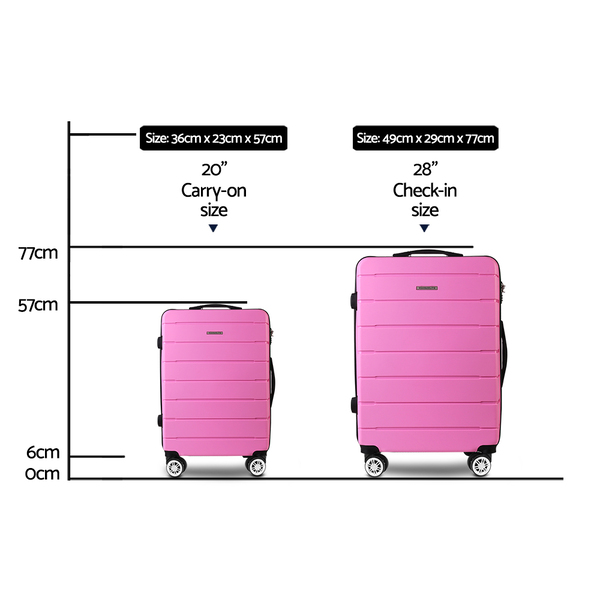 Wanderlite 2PC Luggage Suitcase Trolley - Pink