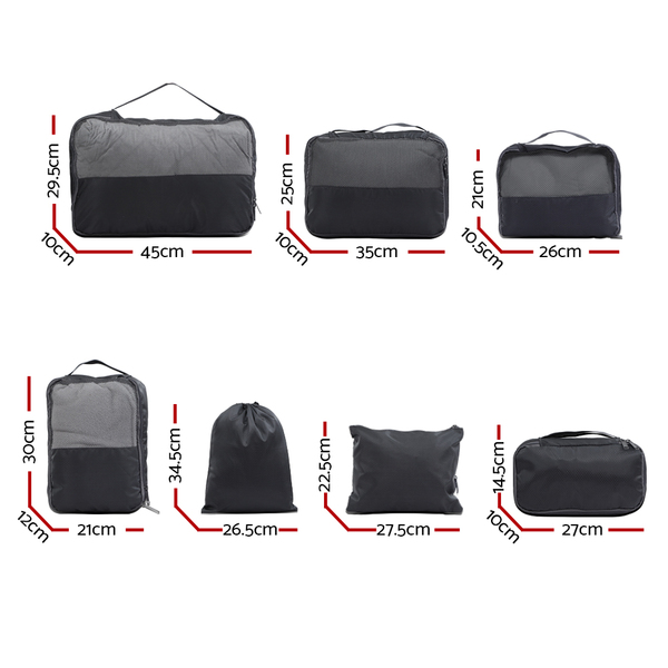 Wanderlite 7PCS Dark Grey Packing Cubes Travel Luggage Organiser Suitcase Storage Bag