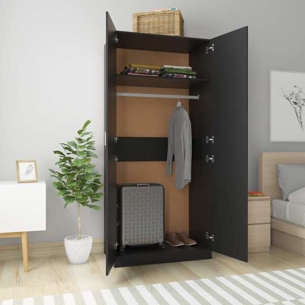 This compact wardrobe makes your clothes or daily accessories easy to access. It will provide a perfect storage solution and add chic touch to your existing home. This wardrobe is made of premium engineered wood, which ensures it sturdiness, durability and long service life. It provides large compartment with a hanging rod, offering you ample space both for your longer outfits and other folded clothes or accessories, such as sweaters, jeans, hats, hand bags, etc. The product is easy to clean. This wardrobe is easy to assemble.