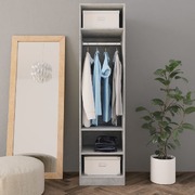 This compact wardrobe makes your clothes or daily accessories easy to access. It will provide a perfect storage solution and add chic touch to your existing home. This wardrobe is made of engineered wood, which ensures it sturdiness, durability and long service life. It includes 3 small compartments and 1 large compartment with hanging rod, offering you ample space both for your longer outfits and other folded clothes or accessories, such as sweaters, jeans, hats, hand bags, etc. All surface is easy to clean. This wardrobe is easy to assemble.