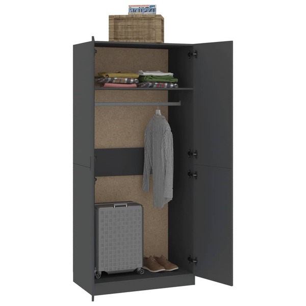 This compact wardrobe makes your clothes or daily accessories easy to access. It will provide a perfect storage solution and add chic touch to your existing home. This wardrobe is made of premium board, which ensures it sturdiness, durability and long service life. It provides large compartment with a hanging rod, offering you ample space both for your longer outfits and other folded clothes or accessories, such as sweaters, jeans, hats, hand bags, etc. The product is easy to clean. This wardrobe is easy to assemble.